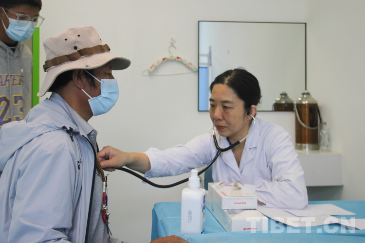 圖為義診專家在拉薩市城關(guān)區(qū)人民醫(yī)院為患者聽(tīng)診 攝影:旦曲