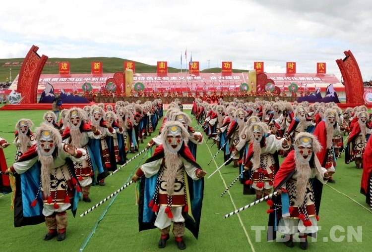 開幕式文藝演出分為《草原飛歌》《奮進那曲》《幸福歌聲》《吉祥鍋莊》四個章節(jié)。格薩爾說唱和折嘎說唱等西藏傳統(tǒng)藝術瑰寶、“鄉(xiāng)村振興 那曲奮進”活動中涌現(xiàn)出的優(yōu)秀文藝作品、西藏自治區(qū)內外著名歌手歌曲連唱、那曲各族人民共跳歡快鍋莊等悉數(shù)登場,帶動開幕式現(xiàn)場氣氛到達高潮。