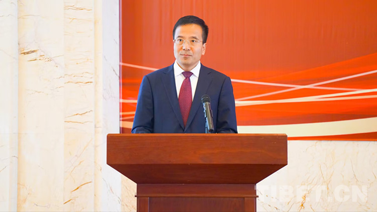 圖為西藏自治區(qū)黨委宣傳部副部長(zhǎng)、西藏自治區(qū)社會(huì)科學(xué)院黨組書記孫向軍在第十六屆“中國(guó)講壇”現(xiàn)場(chǎng)致辭 攝影:趙振宇