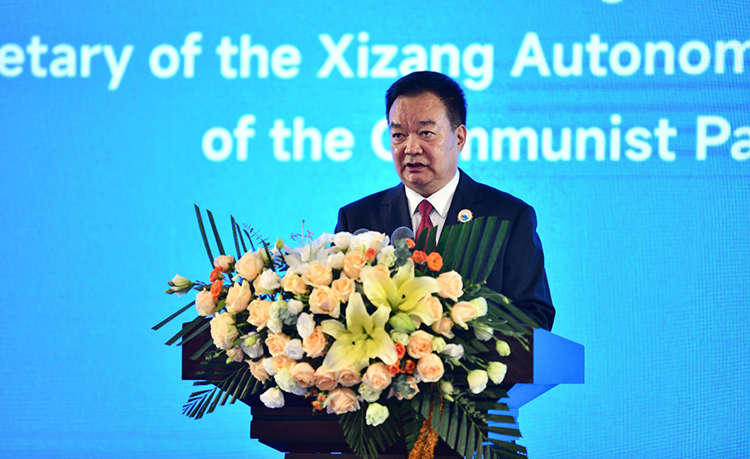 西藏自治區(qū)黨委書記王君正致辭,西藏自治區(qū)黨委副書記、自治區(qū)主席嚴(yán)金海宣布論壇開(kāi)幕。