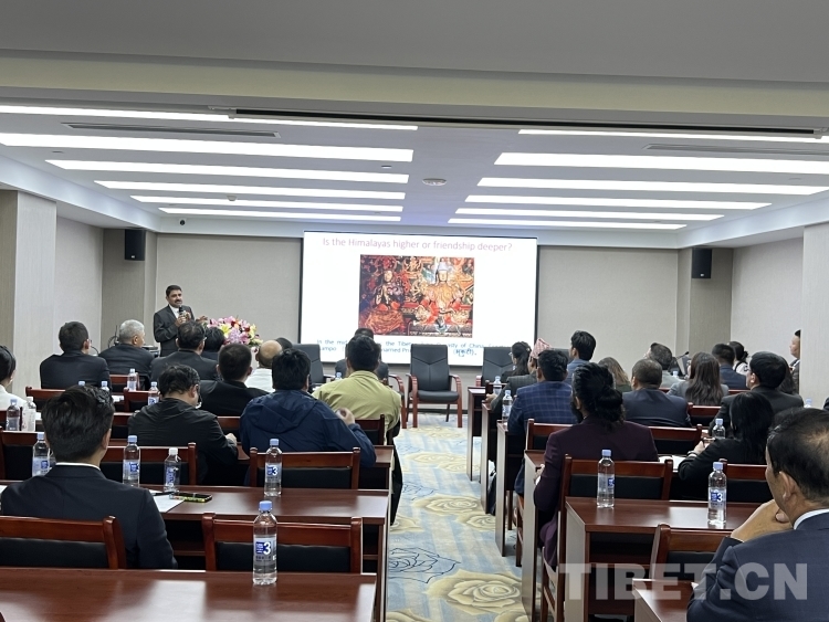 中國西藏網(wǎng)訊 由國家商務(wù)部培訓(xùn)中心主辦、西藏大學(xué)承辦、西藏善緣基金會協(xié)辦的“中國—尼泊爾跨境經(jīng)濟(jì)合作智庫和專家研修班”于9月30日—10月7日在拉薩舉行,并于10月7日在西藏賓館舉行“跨越喜馬拉雅,共話民間友好——杜鵑花盛開的國度”專題研討和聯(lián)誼活動。研修班全體學(xué)員及西藏大學(xué)、西藏善緣基金會、尼泊爾中國凱拉斯文化促進(jìn)會部分來賓參加研討會和聯(lián)誼活動。