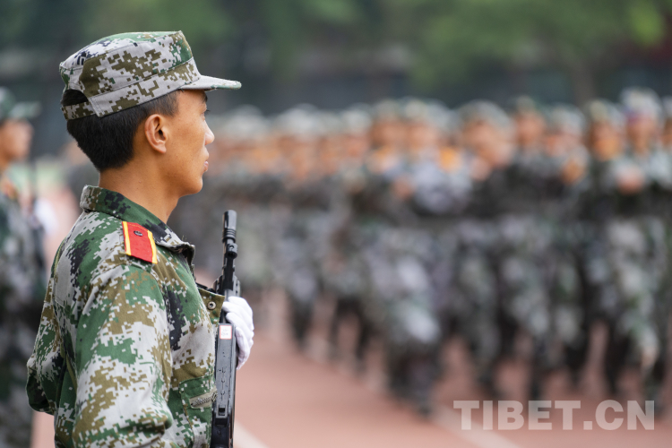 圖為西藏民族大學(xué)2023級學(xué)生軍訓(xùn)匯報表演現(xiàn)場 攝影:趙振宇