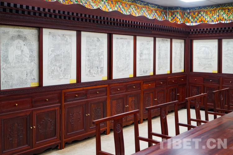 圖為西藏民族大學(xué)渭城校區(qū)新圖書(shū)館內(nèi)的藏學(xué)信息研究中心所展陳的木刻版畫(huà) 攝影:趙振宇