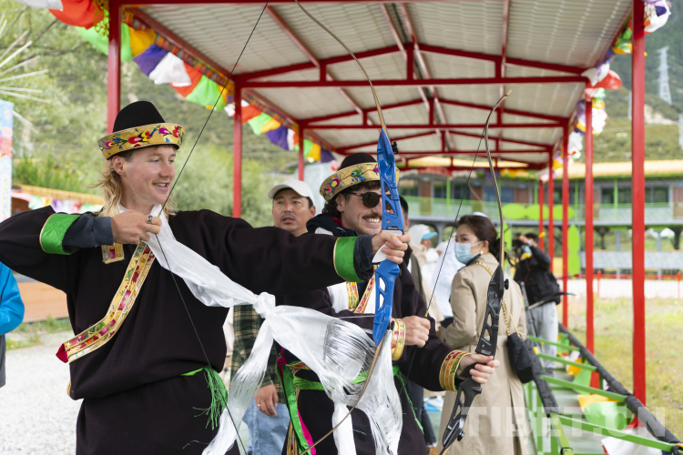身著工布藏裝的澳大利亞籍五指山1867洲際自行車隊隊員Oliver Anderson正在和身邊的隊友進行響箭比賽。在身邊藏族村民的幫助下,Oliver Anderson的箭術越來越準,每射出一支響箭,兩位外籍運動員都因這種體育項目的獨特魅力而歡呼、擊掌。提起林芝這座城市,Oliver Anderson說:“林芝是一座非常美麗的城市,這里的天氣非常舒適,也使自己比賽狀態(tài)非常好。西藏是一處越來越開放的地方,這次能來西藏參加比賽非常榮幸?!?nbsp;