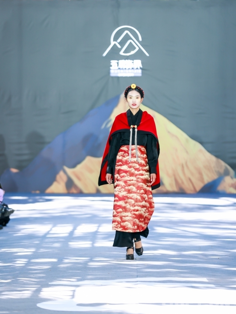 該品牌推出了日沐、星落、風(fēng)挽、云撫、月浮5個系列35套展示服飾,每個系列7套展示服飾設(shè)計都以日喀則的地標(biāo)地點為靈感,呈現(xiàn)出日喀則的自然景觀和文化元素。