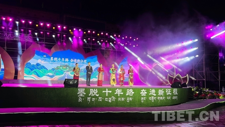 11月4日,墨脫通車十周年系列活動之“墨脫十年路 奮進新征程”文藝演出在墨脫縣好日子蓮花廣場舉行。來自墨脫縣各行各業(yè)的代表、當?shù)鼐用褚约皝碜匀珖鞯氐挠慰妄R聚這里,共同為墨脫通車十周年這一歷史性時刻慶祝。