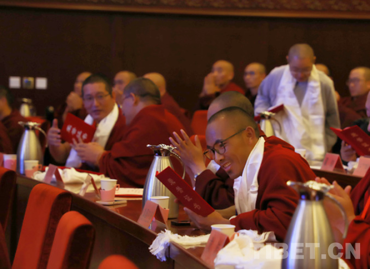 中國(guó)藏語(yǔ)系高級(jí)佛學(xué)院副院長(zhǎng)土多申格主持閉幕會(huì)主旨發(fā)言,副院長(zhǎng)郭莽倉(cāng)宣布教義闡釋論文獲獎(jiǎng)人員名單,與會(huì)領(lǐng)導(dǎo)向獲獎(jiǎng)?wù)撐淖髡哳C發(fā)證書。