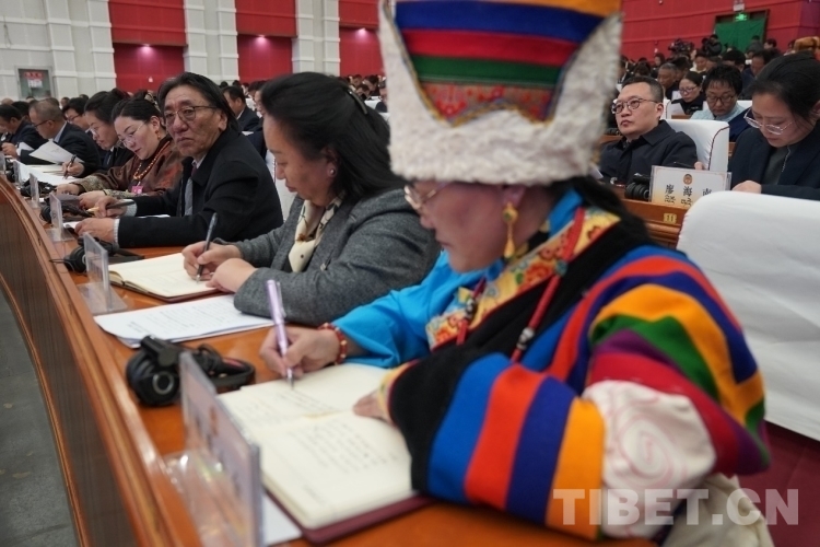 圖為開幕會現(xiàn)場政協(xié)委員在認真聽取各項報告 攝影:次旦拉姆