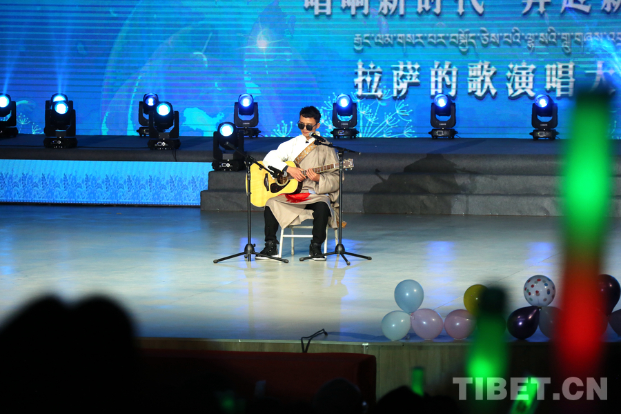 資料圖:視障人士拉巴桑珠就讀于拉薩師范高等??茖W校,他在拉薩師范高等專科學校校園“十佳歌手”大賽中獲得冠軍