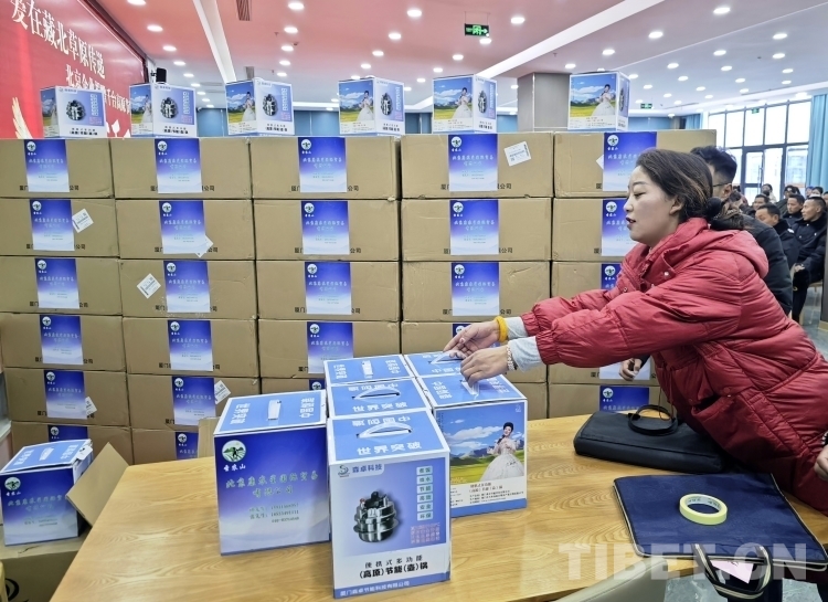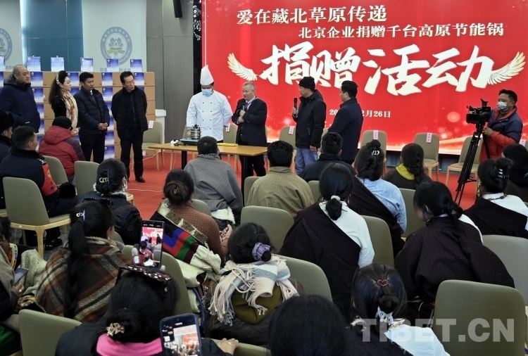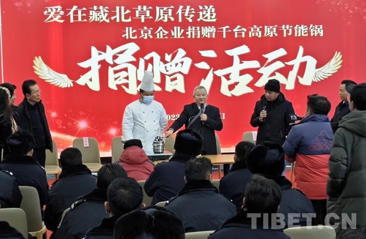 隆冬時(shí)節(jié),藏北大地千里雪飄,寒氣襲人,但在那曲市職業(yè)學(xué)校實(shí)訓(xùn)樓里卻熱鬧非凡。室內(nèi),大型電子屏顯示著“愛在藏北草原傳遞——北京企業(yè)捐贈(zèng)千臺(tái)高原節(jié)能鍋捐贈(zèng)活動(dòng)”的字幕。那曲市近百名農(nóng)牧民群眾和環(huán)衛(wèi)工人、鐵路護(hù)路隊(duì)員代表相聚這里接受捐贈(zèng)。