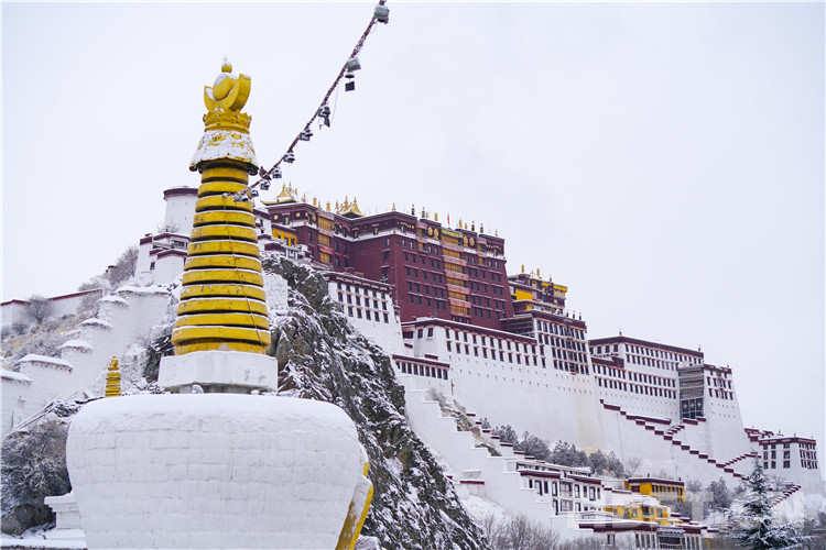 圖為雪中的布達拉宮廣場一角 攝影:趙振宇
