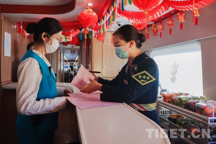 在拉日鐵路上的每一列高原動(dòng)車組列車中,1名列車長,3名乘務(wù)員,要負(fù)責(zé)9節(jié)車廂,755名乘客的乘務(wù)工作。從上車查驗(yàn)車票、行李安全擺放、列車禁煙宣傳,到途中協(xié)助乘客補(bǔ)票、提醒乘客到站信息等,列車乘務(wù)員們幾乎沒有時(shí)間休息。