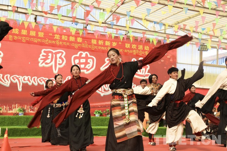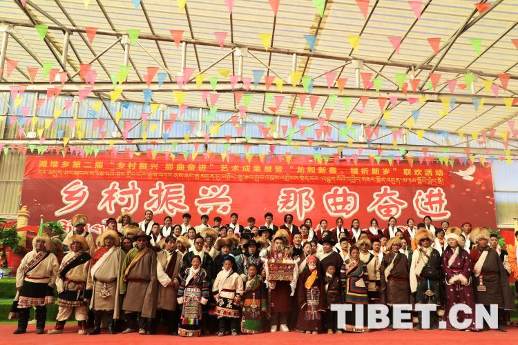 中國西藏網(wǎng)訊 2月10日,中國西藏信息中心“新春走基層”青藏線采訪組一行,來到西藏自治區(qū)那曲市安多縣灘堆鄉(xiāng),適逢當?shù)卦谂e辦灘堆鄉(xiāng)第二屆“鄉(xiāng)村振興 那曲奮進”藝術(shù)成果展暨“龍和新春、福祈新歲”聯(lián)歡活動。采訪組一行來到鄉(xiāng)政府對面的灘堆鄉(xiāng)文化站,記者在現(xiàn)場看到許多穿著具有當?shù)孛褡逄厣椀娜嗽诖司奂?。在好奇心的?qū)使下,經(jīng)詢問當?shù)馗刹坎胖溃瑸橄灿?024春節(jié)和藏歷新年,感激黨和國家的關(guān)心關(guān)懷,歌頌如今來之不易的幸福生活,鄉(xiāng)村文藝隊特此精心準備了文藝節(jié)目,以嶄新的面貌和昂揚的精神展現(xiàn)新時代牧民群眾的精神風貌和幸福生活。
