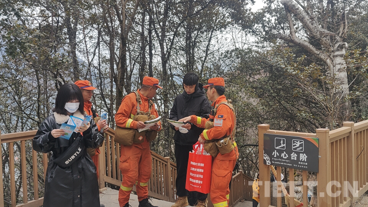 “您好,您在游玩過程中一定要注意安全用火,如發(fā)現(xiàn)火情,請(qǐng)?jiān)诖_保自身安全的前提下?lián)艽?2119報(bào)警電話……”森林消防指戰(zhàn)員在人流密集的景區(qū)設(shè)立執(zhí)勤點(diǎn),向來往游客發(fā)放防火常識(shí)宣傳手冊(cè),面對(duì)面地科普森林防火常識(shí),嚴(yán)格管控野外火源、及時(shí)排除火險(xiǎn)隱患。