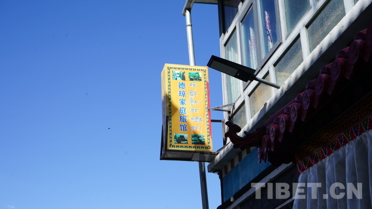 二十世紀(jì)八十年代前,整個洛扎縣的機(jī)動車普及率很低,普通百姓出門只能乘坐馬車,從拉康鎮(zhèn)到洛扎縣縣城需要三天時間。所以在那時候,鎮(zhèn)子里的人很少去縣城,一些老人甚至一輩子也沒走出過拉康。2019年,拉康鎮(zhèn)的盤山公路全線通車,極大地改善了當(dāng)?shù)嘏c外界的交流交往,拉康鎮(zhèn)客流量逐步提升,2022年景區(qū)年旅游人次達(dá)38000余人次,政府在發(fā)展旅游業(yè)的同時,投入100余萬元帶動居民開辦家庭旅館——村民將自家空余的房間對外短租,形成民俗式的家庭旅店,德瓊家庭旅館就是這樣的一間旅館。