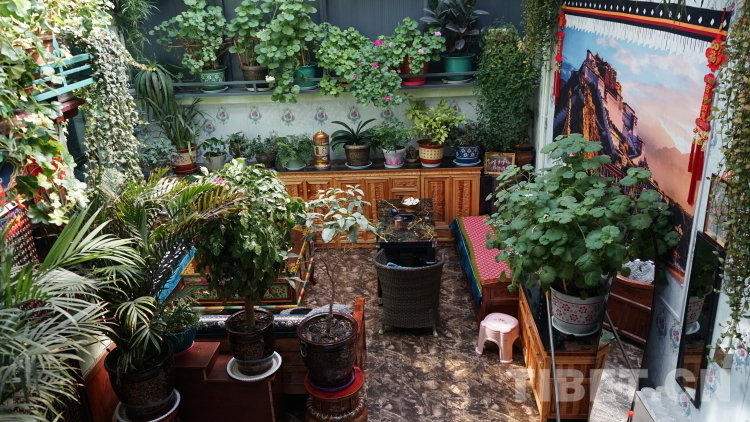 德瓊家庭旅館以女主人次仁德瓊的名字命名。工作人員告訴我們,這里是拉康鎮(zhèn)生意最好的旅館之一。旅館位于兩條主干道交接的拐角,地理位置好,招牌也立得醒目,每個進(jìn)入鎮(zhèn)子的人第一眼就能看到德瓊家庭旅館的招牌。但生意好絕不僅僅是因為地理位置優(yōu)越。走進(jìn)這間旅館,如同進(jìn)入一間溫室花棚。在這里,花草植物是絕對的主角,各色草本、藤本、灌木植物高低錯落,幾乎填滿了墻壁空間。蕭瑟的冬日里,粉的、白的、紅的花朵擠擠挨挨地開著,茉莉、山茶、三角梅...來自不同地域的花卉植物在這邊境小鎮(zhèn)的一隅競相綻放,天南海北在此握手言和。德瓊阿佳用她對生活的熱情將家庭旅館裝點(diǎn)得生機(jī)盎然,我想正是這份純真的熱愛才是德瓊家庭旅館生意火爆的關(guān)鍵所在。