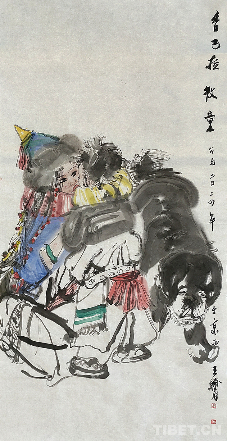 自1978年考入西北師范大學(xué)學(xué)習(xí)中國(guó)畫專業(yè),王輔民對(duì)表現(xiàn)藏族題材的中國(guó)畫充滿興趣。在80年代初,受吳山明老師的影響,王輔民首次接觸到用中國(guó)畫水墨形式表現(xiàn)藏族群眾生活的作品,這為他后續(xù)的創(chuàng)作奠定了基礎(chǔ)。1993年調(diào)入蘭州畫院后,他多次到甘肅省甘南州、青海省黃南州和西藏自治區(qū)各地市采風(fēng)寫生,深入體驗(yàn)當(dāng)?shù)厣?,持續(xù)近30年。這些經(jīng)歷加深了他對(duì)西藏文化的了解,也為他找到了藝術(shù)創(chuàng)作的切入點(diǎn)和主題。