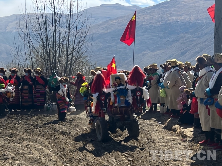 中國西藏網訊 陽春三月,萬物復蘇,又是一年新生的伊始。在溫和的陽光下,西藏各地農民身著節(jié)日盛裝,在田間地頭唱起祈愿歌互敬青稞酒,伴隨著犁地機的轟鳴聲,一粒粒充滿希望的種子被埋進土里。