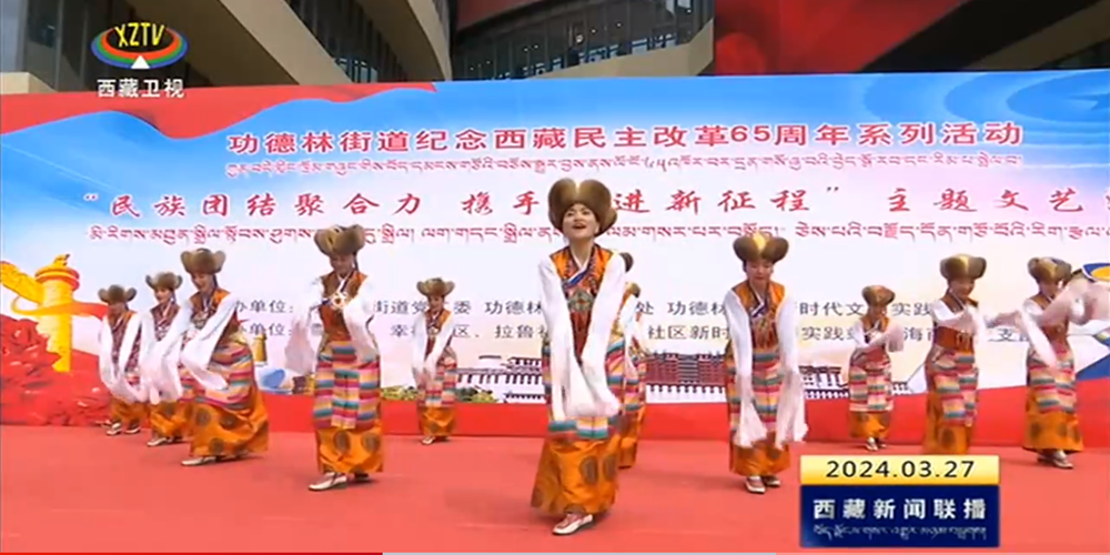圖為西藏自治區(qū)拉薩市功德林街道開展文藝匯演活動(dòng) 圖源:西藏衛(wèi)視
