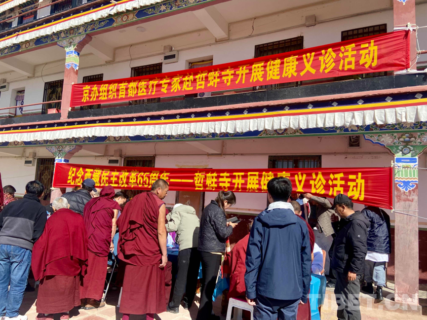 中國西藏網(wǎng)訊 “收到今天有北京醫(yī)療專家過來義診的消息,我一大早就過來了。身體平時沒什么大的毛病,就想著借此機會檢查一下,畢竟年紀大了?!?6歲的哲蚌寺僧人加參高興地說。為了讓哲蚌寺僧人和周邊民眾在家門口就能享受到優(yōu)質(zhì)的醫(yī)療服務(wù),傳播健康生活理念,提高健康意識,3月29日,西藏自治區(qū)人民政府駐北京辦事處(以下簡稱:京辦)組織北京11家重點醫(yī)院的12名醫(yī)療專家走進位于拉薩市城西的哲蚌寺,開展“踔厲奮發(fā)擔(dān)使命 送醫(yī)進藏暖民心”義診活動,得到僧人和群眾的一致稱贊。