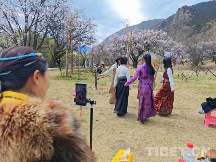 在嘎拉村桃花源內(nèi)、民族文化體驗區(qū)、產(chǎn)品展銷點……都能看到林芝市職業(yè)技術(shù)學(xué)校學(xué)生們的身影。學(xué)生們走進桃花林,以藍天白云、皚皚雪山為背景,通過直播帶全國各地的網(wǎng)友們云游林芝“桃花第一村”,展示著桃花灼灼盛開的美景。他們生動的解說和精彩的直播吸引了大量觀眾“云游林芝 云賞桃花”,體驗不一樣的桃源春色。