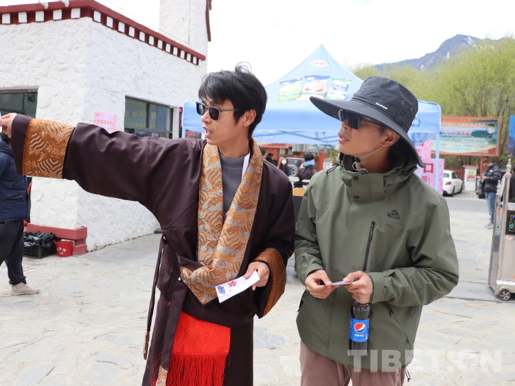 “您好,這里都能體驗什么呢?”游客檢票后進入嘎拉桃花源大門的第一眼,就能看到名為“次仁的家”的藏族文化體驗區(qū),獨特的藏式風(fēng)格小屋和擺件以及藏族服飾都吸引游客前去一探究竟,此時學(xué)生們請“貴客”到“屋里”坐,為他們敬酥油茶和甜茶、講解藏族文化、幫他們穿上藏裝拍照留念等等,一系列耐心細致的服務(wù)讓游客們感受到了林芝的熱情和溫暖,紛紛點贊。