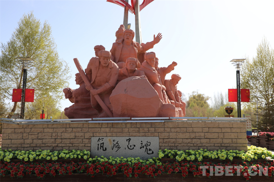 將軍樓公園因格爾木奠基人——慕生忠將軍而得名。公園門內(nèi)不遠處即是反映當年筑路大軍艱苦開路的群雕“筑路忠魂”。遙想當年,筑路大軍用鎬、鍬、錘等簡單的工具,爬冰臥雪,僅用時7個月零4天,打通全長1283公里的青藏公路格爾木至拉薩段,創(chuàng)造了人類筑路史上的奇跡。