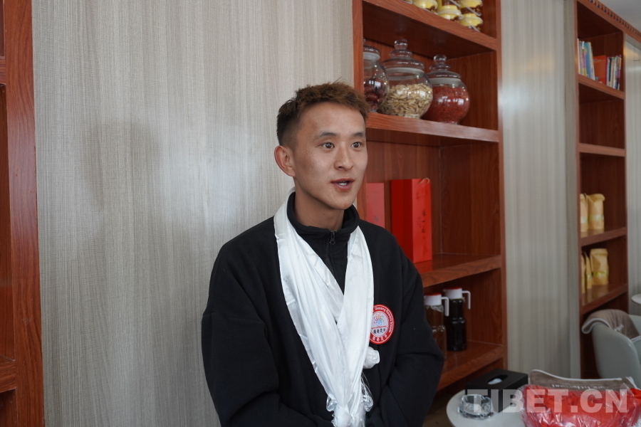 圖為正在接受采訪的格?;ㄩ_體驗(yàn)館運(yùn)營負(fù)責(zé)人丹增洛色 攝影:張曉琪