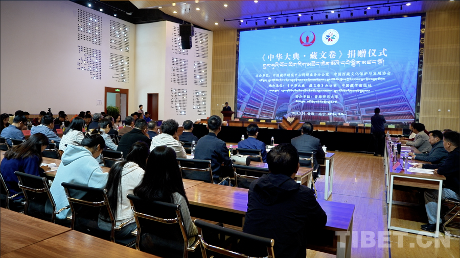 中國西藏網(wǎng)訊 5月14日,《中華大典·藏文卷》捐贈(zèng)儀式在青海師范大學(xué)舉行。中國藏學(xué)研究中心與中國西藏文化保護(hù)與發(fā)展協(xié)會(huì)為青海、甘肅兩省的47家機(jī)構(gòu)和藏傳佛教寺廟捐贈(zèng)《中華大典·藏文卷》系列圖書。
