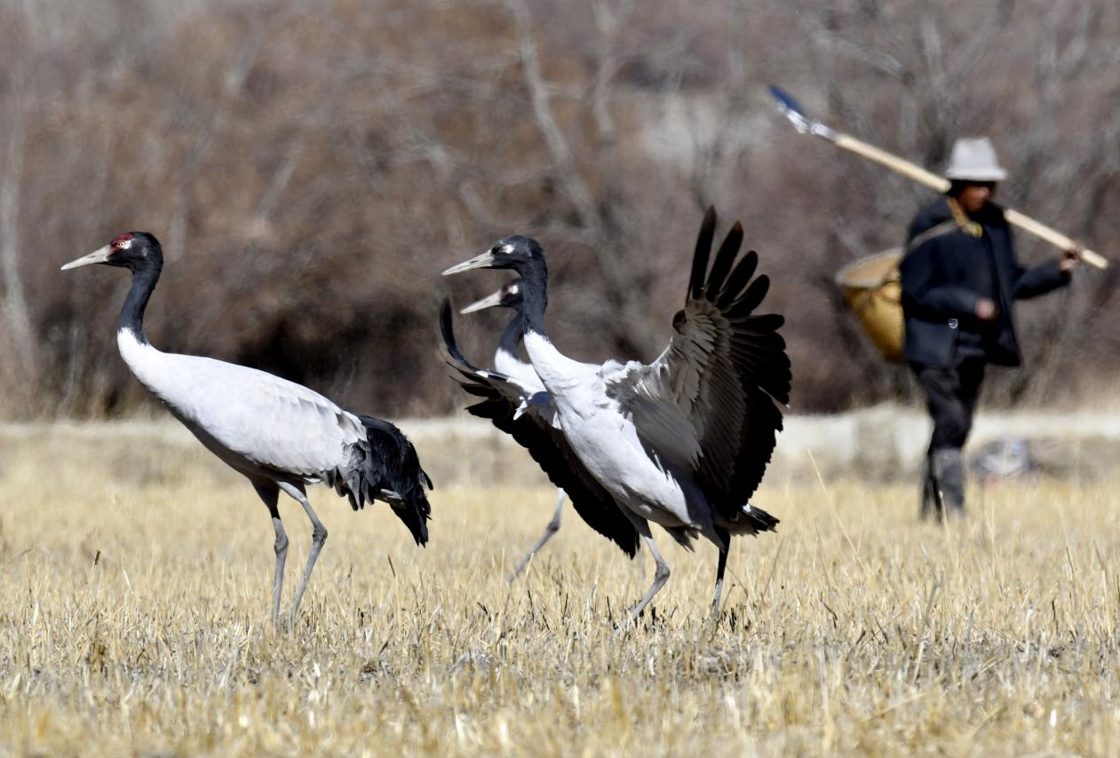 圖為三等獎(jiǎng)作品《日喀則越冬黑頸鶴》(組圖之一) 攝影:孫躍