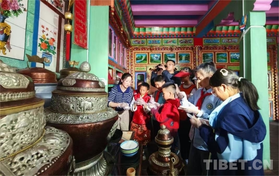 圖為四?。▍^(qū))市學(xué)生們在西藏昌都體驗(yàn)卡塞的制作