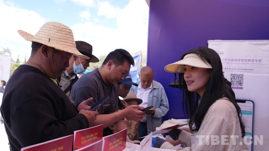“叔叔阿姨,我們這個軟件可以掃這個二維碼下載,也可以在小程序上搜索,這個軟件在您日常生活中用處很大,來!我教您怎么使用。”西藏高弛信息技術(shù)服務(wù)有限責(zé)任公司的數(shù)字技術(shù)應(yīng)用體驗展旁,圍著很多人,工作人員邊給大家發(fā)放宣傳資料,邊耐心地講解“藏譯通”藏漢雙語智能翻譯軟件的各大功能和使用方法。