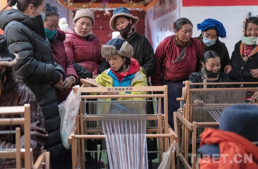 2020年,“小巷三尋”公司負(fù)責(zé)人鄭芬蘭帶領(lǐng)10人團隊、帶著50臺新式織布機,跨越4000多公里的青藏線,從杭州出發(fā)前往西藏那曲,為那曲當(dāng)?shù)啬撩袢罕妿ジ蝇F(xiàn)代化的生產(chǎn)工具。經(jīng)過一路顛簸,一到那曲,鄭芬蘭和隊員們便克服海拔4500米高原反應(yīng)帶來的身體不適,開始組裝織布機。