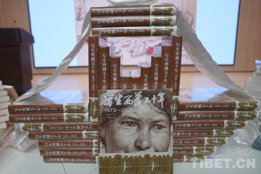 韓書力對(duì)青藏高原上的各族人民在生活、工作和創(chuàng)作上向他提供的幫助表示感謝。他經(jīng)歷過改革開放年代,見證了西藏和祖國(guó)的跨越式發(fā)展,在某種意義上是一個(gè)參與者、觀察者,他用線條和色彩盡可能地、文化性地、審美性地將這些呈現(xiàn)出來。他說,作為當(dāng)代中國(guó)西藏文藝界的一員,能夠有這樣的經(jīng)歷是幸福的。