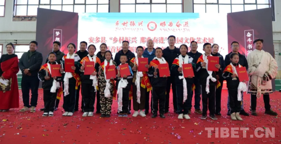 圖為安多縣“鄉(xiāng)村振興 那曲奮進(jìn)”校園文化藝術(shù)展暨首屆“新時(shí)代好少年”頒獎(jiǎng)典禮現(xiàn)場
