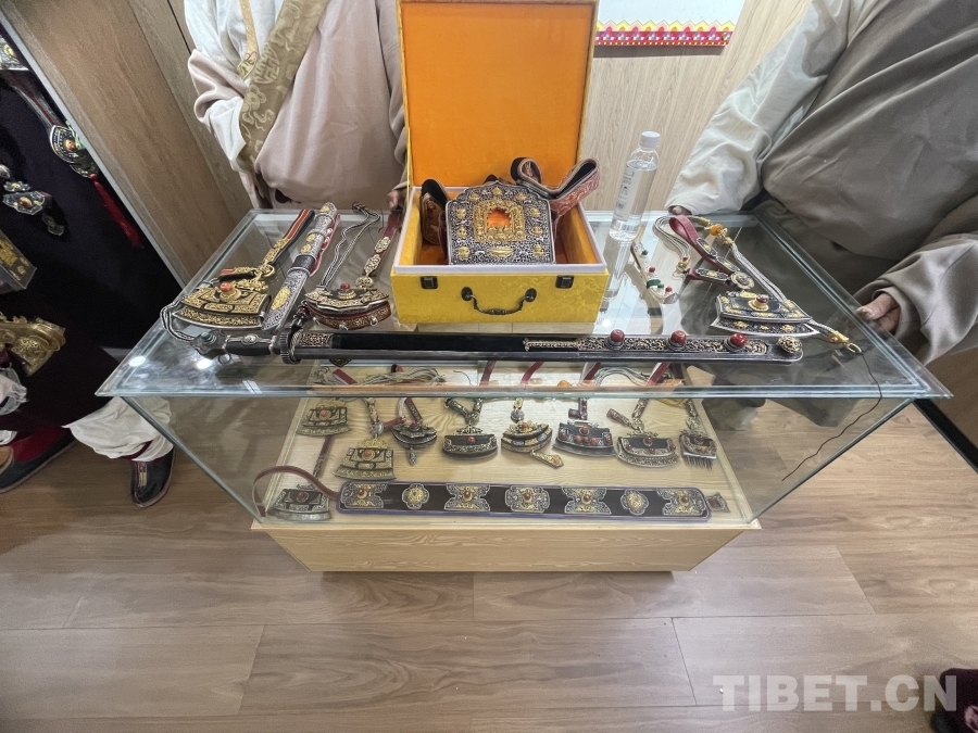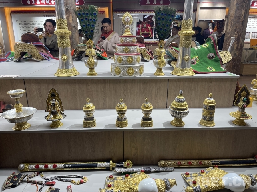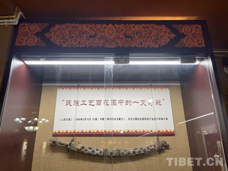 在傳習(xí)所的展廳內(nèi),各式各樣的金屬鍛造工藝品琳瑯滿目。其中,一把工藝精湛的藏刀吸引了眾人的目光。據(jù)講解員介紹,這把藏刀曾在1980年2月10日《人民日報(bào)》第一版刊載的《鋒利的白玉藏刀》上被譽(yù)為“民族工藝百花園中的一支奇葩”。白玉縣河坡鎮(zhèn)的金屬鍛造技藝分為七大類,刀具作為最具特色和知名度的產(chǎn)品,深受人們喜愛。