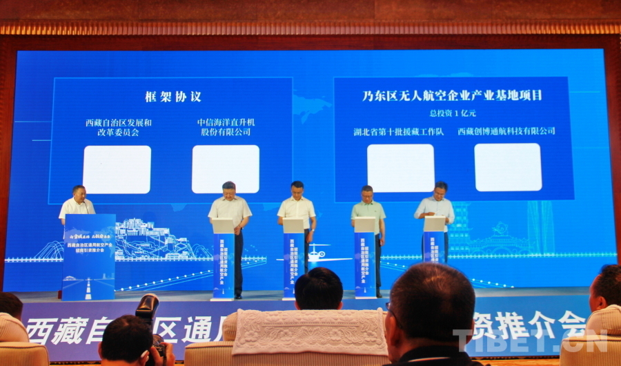 據(jù)介紹,本次推介會(huì)突出培育和發(fā)展“通用航空+”新業(yè)態(tài)和招商引資項(xiàng)目合作兩個(gè)重點(diǎn)。旨在搭建交流合作平臺(tái),按照西藏自治區(qū)黨委、政府關(guān)于大力發(fā)展通用航空產(chǎn)業(yè)的安排部署,優(yōu)化完善通用機(jī)場(chǎng)布局和通用航空運(yùn)營(yíng)網(wǎng)絡(luò),全面建設(shè)“布局合理、功能清晰、層次分明、規(guī)模適當(dāng)”的通用航空服務(wù)體系,加快提升西藏通用航空供給側(cè)保障能力,為全面建設(shè)社會(huì)主義現(xiàn)代化新西藏提供強(qiáng)力支撐。推介會(huì)上,西藏自治區(qū)發(fā)展和改革委員會(huì)與中信海洋直升機(jī)股份有限公司,湖北省第十批援藏工作隊(duì)與西藏創(chuàng)博通航科技有限公司,扎囊縣人民政府與湖南卓譽(yù)科技有限公司,加查縣人民政府與加查縣御補(bǔ)堂健康科技有限責(zé)任公司,西藏自治區(qū)投資促進(jìn)局與四川一諾通用航空有限公司、大有農(nóng)業(yè)(北京)有限公司進(jìn)行了簽約。