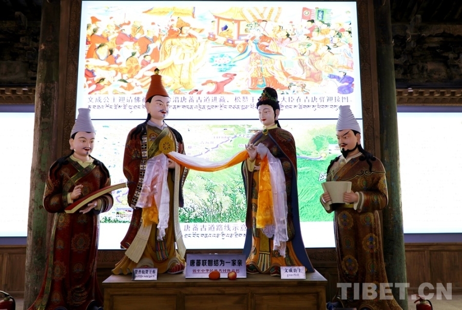 圖為宏覺寺鑄牢中華民族共同體意識體驗(yàn)館內(nèi)“唐蕃聯(lián)姻”塑像 攝影:王茜