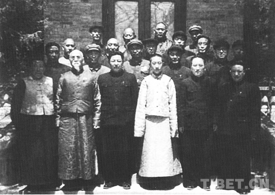 圖為習(xí)仲勛代表西北軍政委員會(huì)前來送行,期間和十世班禪、喜饒嘉措,青海省委、省政府領(lǐng)導(dǎo)及各界人士一起合影 程頤工供圖