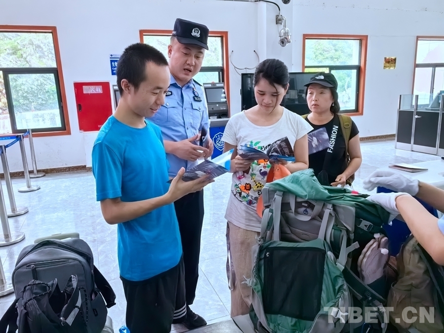 圖為邊檢站民警在樟木口岸為過(guò)往旅客分發(fā)禁毒知識(shí)宣傳單 攝影:軒紅偉