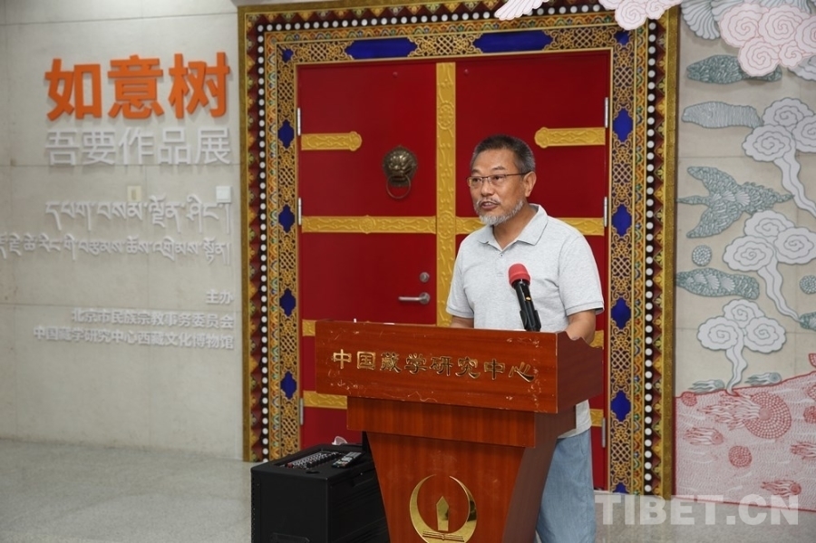 中國西藏網(wǎng)訊 7月5日,由北京市民族宗教事務(wù)委員會指導(dǎo)、中國藏學(xué)研究中心西藏文化博物館主辦的“如意樹——吾要作品展”在京開幕。中國藏學(xué)研究中心有關(guān)負責(zé)人和專家學(xué)者、北京市民族宗教事務(wù)委員會有關(guān)負責(zé)人、書籍設(shè)計師吾要及北京藝術(shù)界人士等60余人出席開幕式。