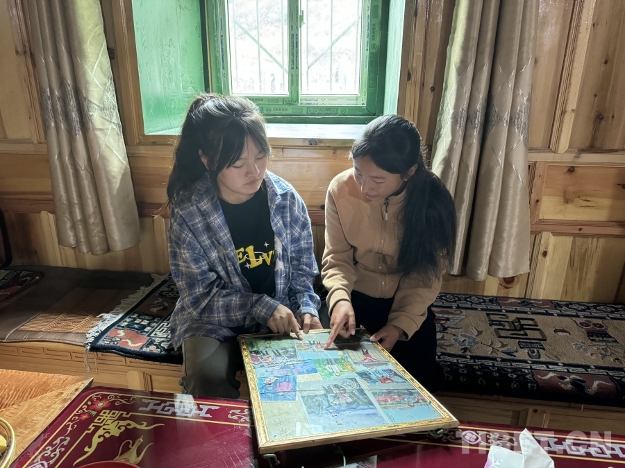 圖為洛絨友珍(左)和格絨擁金(右)翻看8年前在北京接受治療時(shí)拍攝的老照片 攝影:王智霖