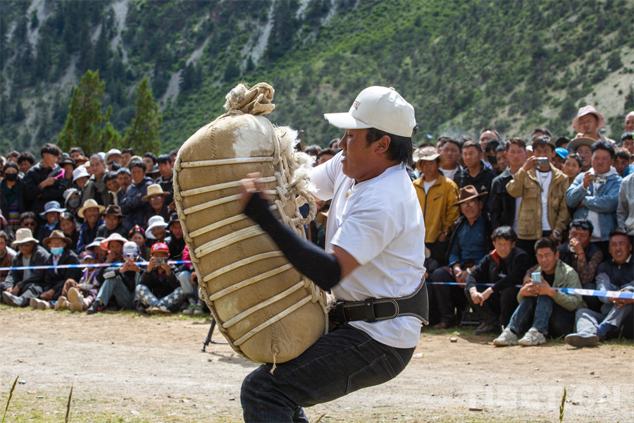 圖為活動現(xiàn)場的抱沙袋比賽