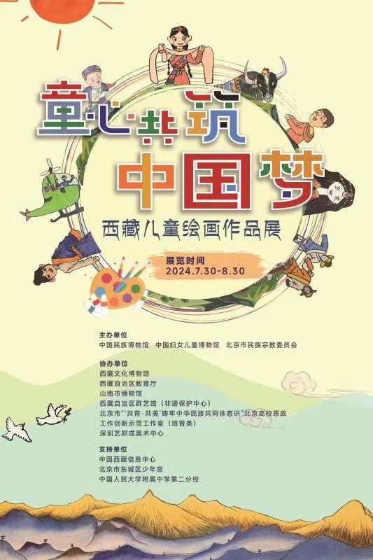據(jù)悉,為全面推進(jìn)中華民族共有精神家園建設(shè),深入實(shí)施青少年“筑基工程”,開(kāi)展有形、有感、有效的民族團(tuán)結(jié)進(jìn)步教育,中國(guó)民族博物館與中國(guó)婦女兒童博物館積極發(fā)揮博物館公共文化教育的職能作用,連續(xù)兩年組織邊疆和內(nèi)地少年兒童以繪畫(huà)藝術(shù)為載體雙向交流,搭建平臺(tái),舉辦“童心共筑中國(guó)夢(mèng)——兒童繪畫(huà)作品展”。繼2023年新疆兒童繪畫(huà)作品展取得圓滿(mǎn)成功后,今年以“西藏兒童繪畫(huà)作品”為專(zhuān)題的活動(dòng)入選國(guó)家民委“各族青少年交流計(jì)劃2024年全國(guó)試點(diǎn)示范項(xiàng)目”,并再次啟動(dòng),旨在推動(dòng)各地兒童以筆寄情、以畫(huà)交友,共同打造一個(gè)各民族共事共樂(lè)的平臺(tái),推動(dòng)文旅融合與美育融合,促進(jìn)各民族交往交流交融,共同譜寫(xiě)中華民族共有精神家園的新篇章。