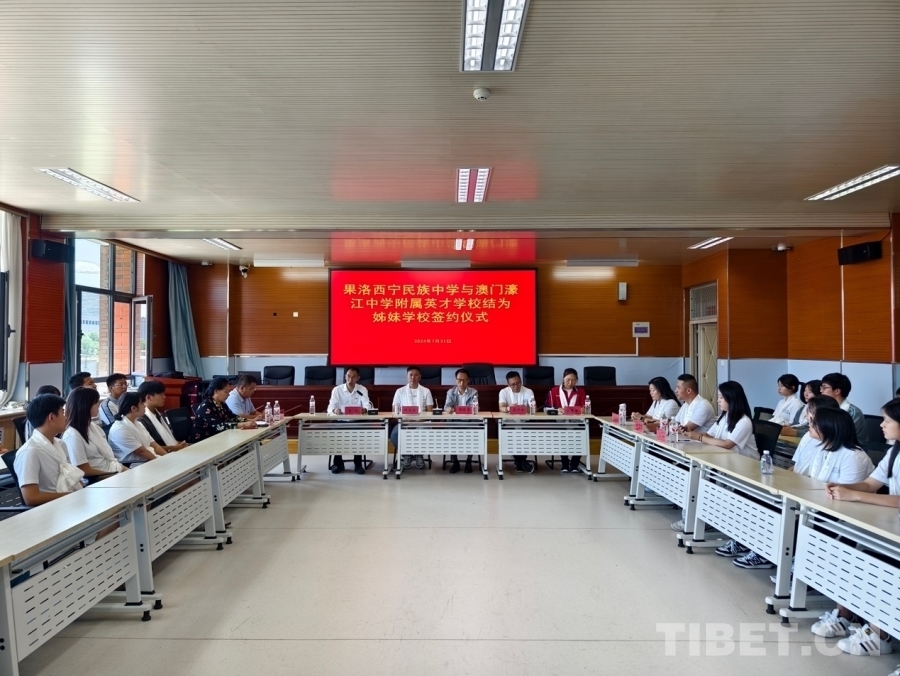 果洛西寧民族中學與澳門濠江中學附屬英才中學結為姊妹學校簽約儀式也在此次活動中舉行,澳門濠江中學附屬英才學校的師生與果洛西寧民族中學的師生代表進行了深度的交流。此舉將加強兩校之間的互學互鑒,深化了解和友誼,促進優(yōu)質教育資源共享,不斷推動基礎教育創(chuàng)新發(fā)展。