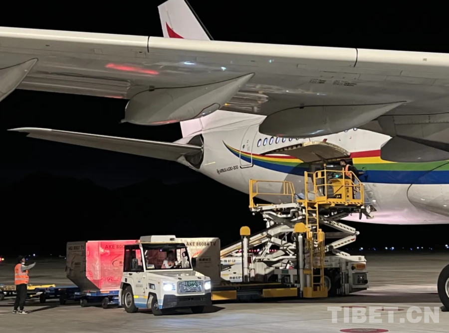 圖為拉薩貢嘎國(guó)際機(jī)場(chǎng)夜間保障現(xiàn)場(chǎng)