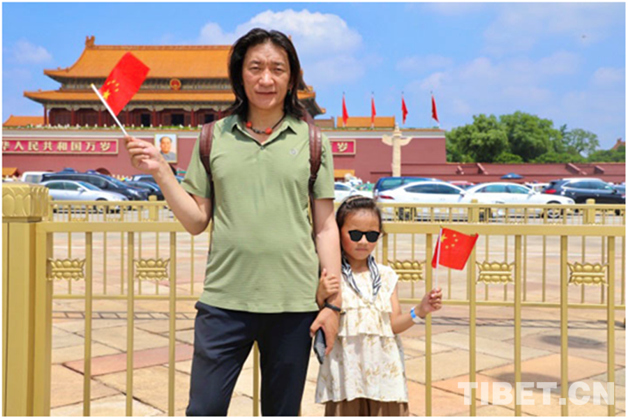 圖為澤多和澤丹父女倆在天安門(mén)前合影 攝影:龍真多吉
