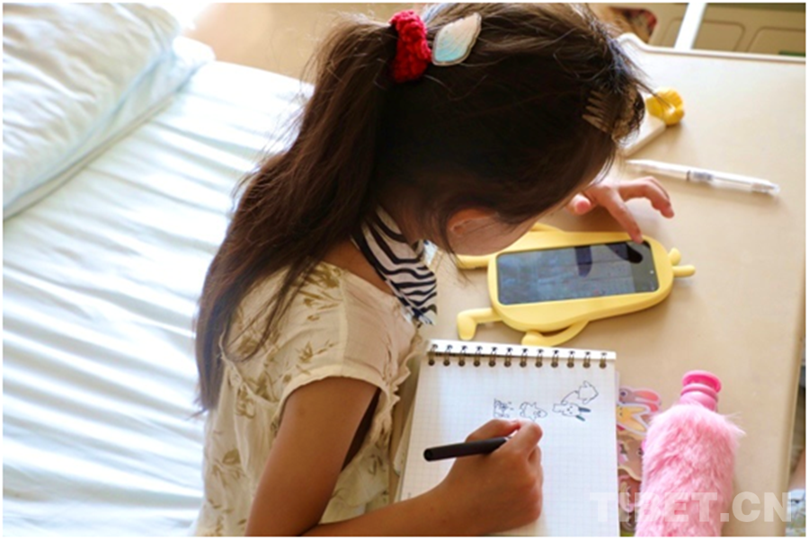 記者了解到,澤多家里共有4個(gè)孩子,小澤丹在四個(gè)兄弟姐妹中排行老三,也是家中最好學(xué)的孩子。在醫(yī)院病房里,小澤丹拿著一本自己專屬的筆記本,反復(fù)在上面寫(xiě)著自己的漢文和藏文名“澤丹(????????)”。有時(shí)她也會(huì)照著手機(jī)里的圖片,一筆一劃有模有樣地勾勒出各種圖案。