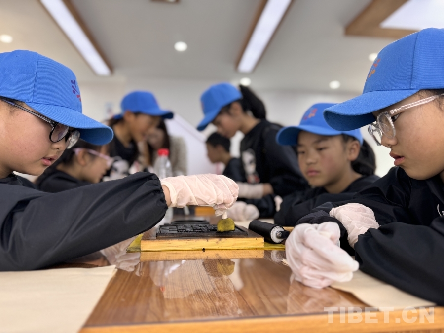 圖為理塘青少年體驗(yàn)活字印刷術(shù)