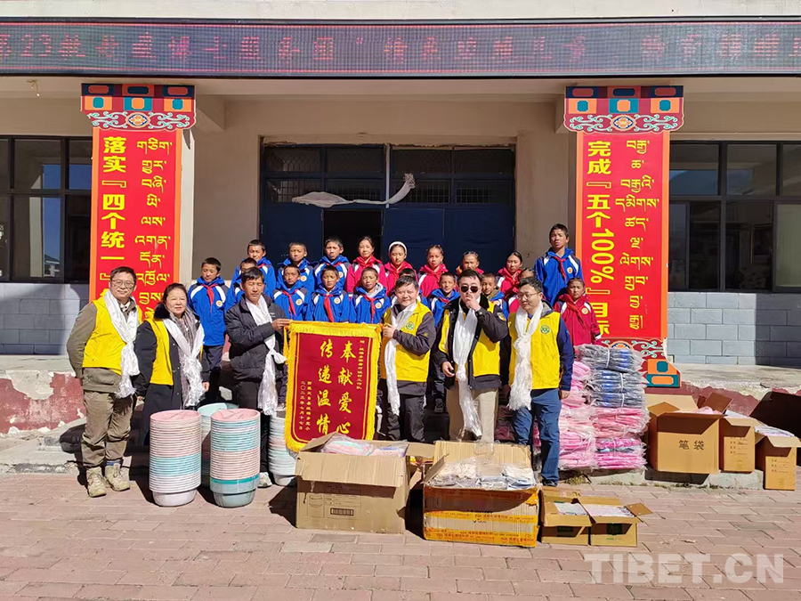 2023年11月,作為北京市新聯(lián)會理事、石景山區(qū)新聯(lián)會會長、朵云文化藝術服務中心主任,我第二次到西藏,隨公益組織雙閃車隊、援藏博士服務團一起到日喀則市定日縣絨轄鄉(xiāng)完小,為這所邊境小學捐贈了價值1000元的文具。
